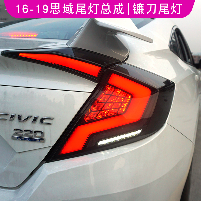Suitable for 16-19 10th generation Civic taillight assembly Sickle modified LED streamer steering reversing brake light