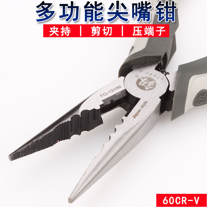 Spring labor-saving Japan Fukuoka needle-nose pliers 6-inch multi-function pliers fishing pliers pointed pointed pliers pointed pliers