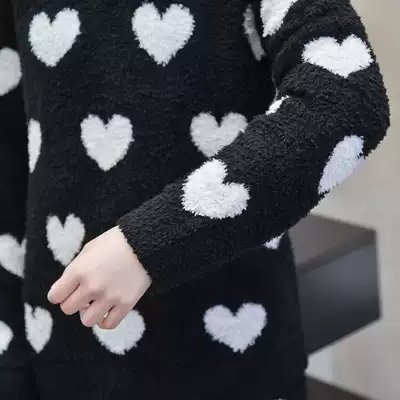 Love soft pajamas women's autumn and winter suit sweet and cute round neck wool thickened loose coral velvet home clothes