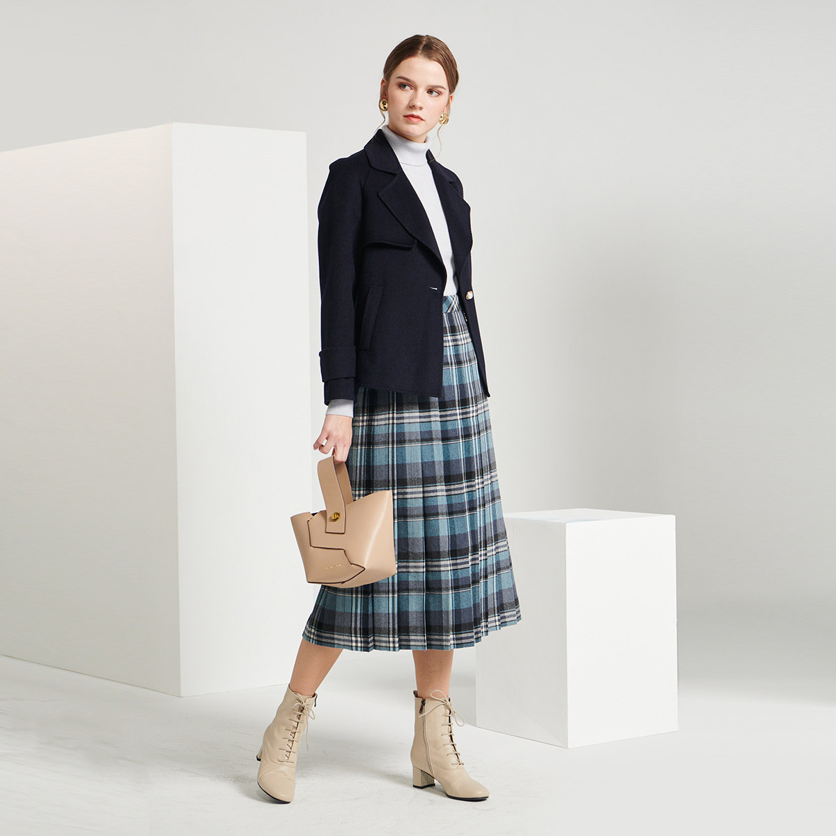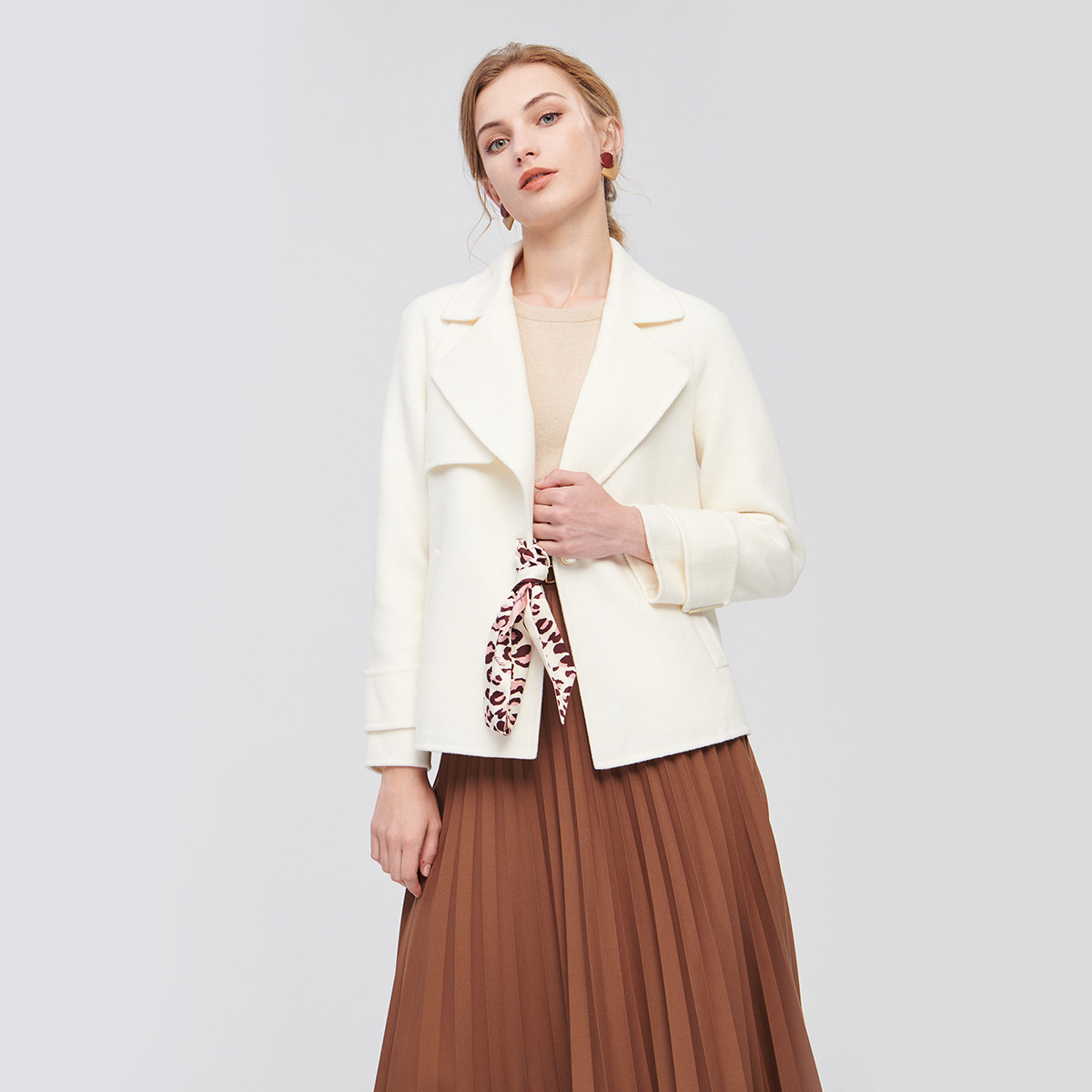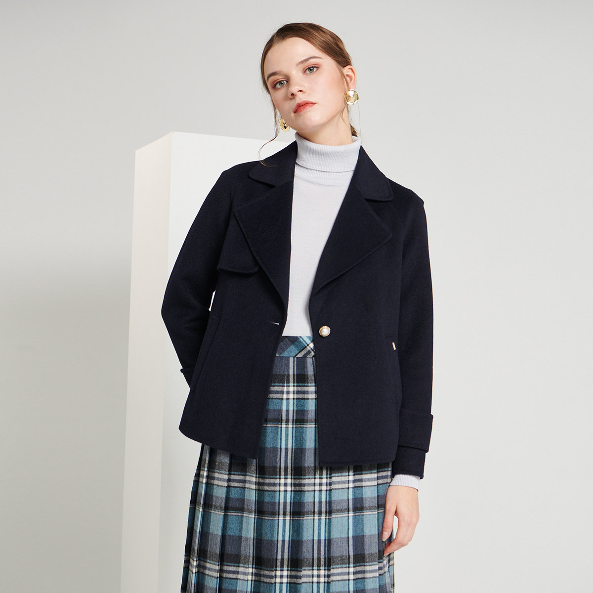 SCOFIELD women's autumn/winter diagonal slip pocket wool blend short comfort wool coat SFJW98T01E