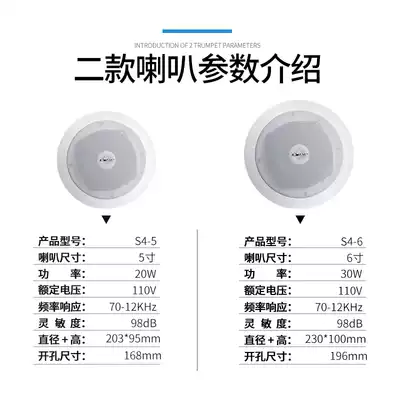 Sen Ke S4 coaxial ceiling speaker speaker home power amplifier set speaker constant pressure public broadcast background music audio shop dedicated hotel shopping mall supermarket ceiling hanging ceiling ceiling embedded
