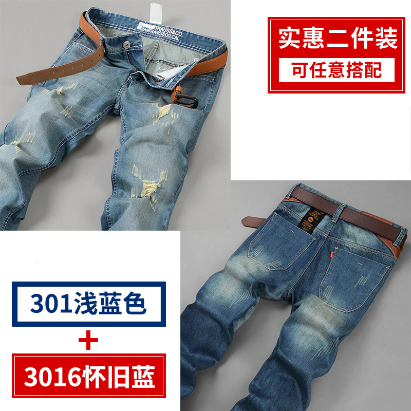 Spring and summer men's jeans men's straight loose trend wild youth trend brand casual slim-fit retro pants men