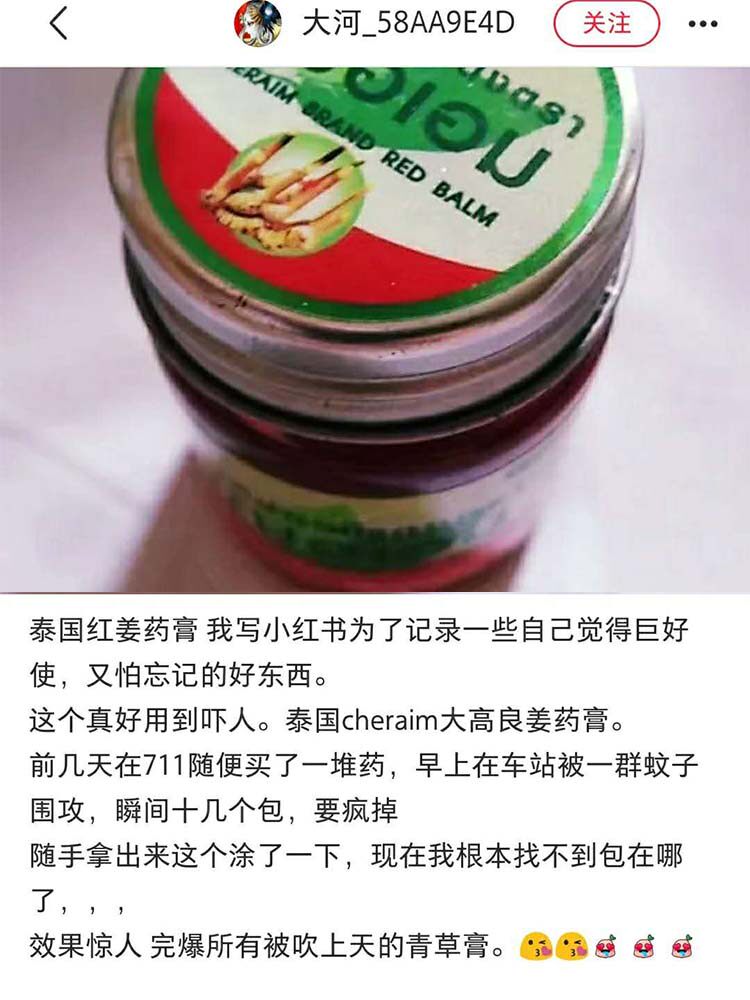 Thailand cheraim red ginger paste mosquito bites itching athlete's foot tinea repellent mosquito repellent sprain strain active collateral cream 22g