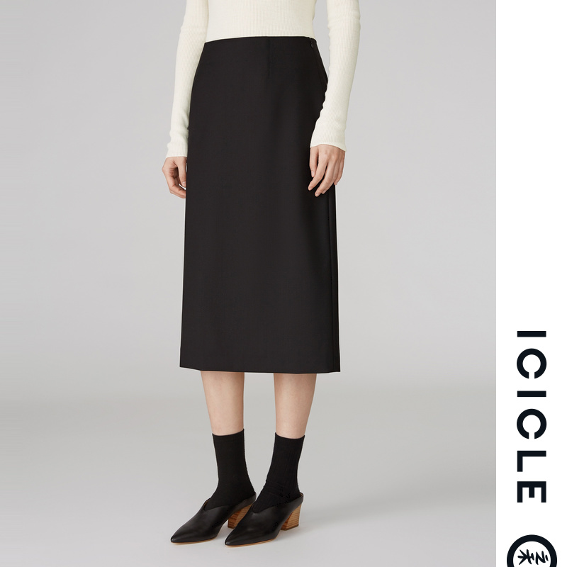 ICICLE Zhihe women's thin wool elastic medium and long version worsted thin wool skirt AAAB219B02201A