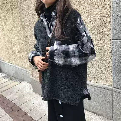 2021 spring and autumn new knitted vest women's vest mid-length V-neck Korean loose sleeveless vest sweater jacket