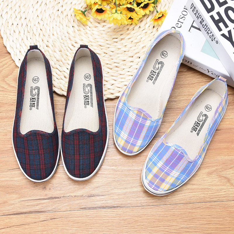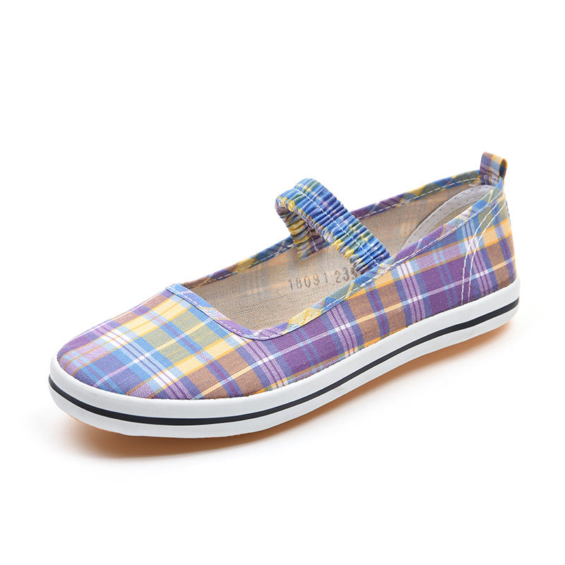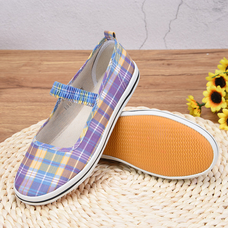 Old Beijing Canvas Shoes Qingdao Cloth Shoes Women's Summer Plaid Face Dance Dance Shoes Women's Shoes Elastic Belt Summer Sneakers Women