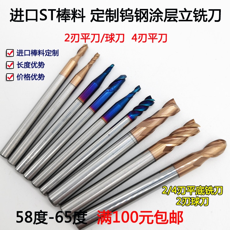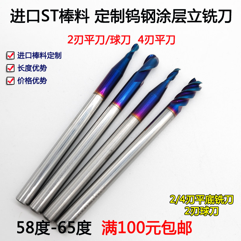 Imported ST rod 58-65 degree alloy tungsten steel coated flat ball knife R0 5 D1 2 3 4 6mm engraving machine milling cutter