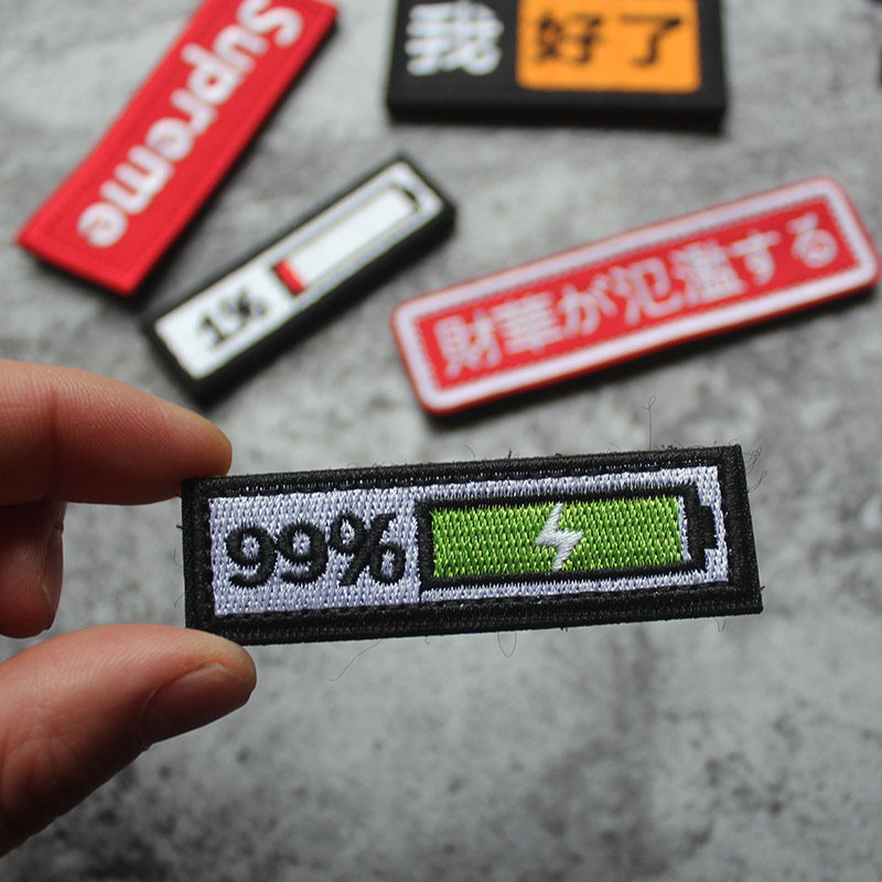 Electric quantity Display full embroidery magic sticker chapter personality creative arm badge Morale Badge Charge 99% Broken Hole Sticker 1% Badge