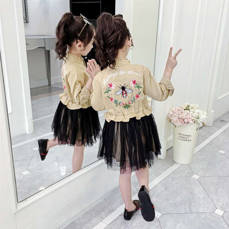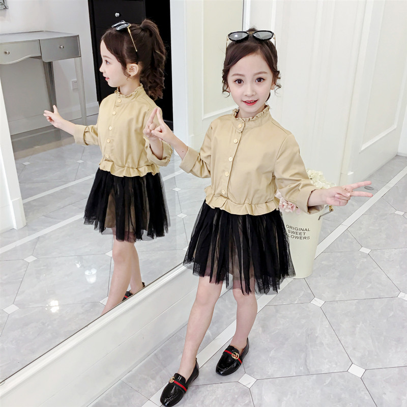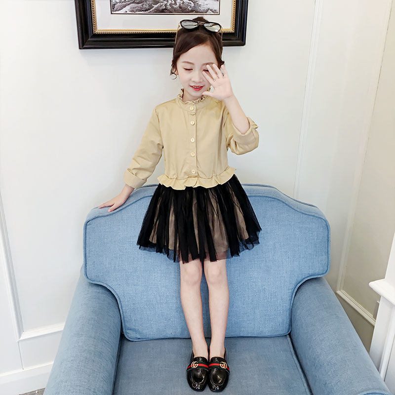 Girls spliced mesh dress 2021 new Korean version of the children's super Ocean school spring and autumn dress little girl net red skirt