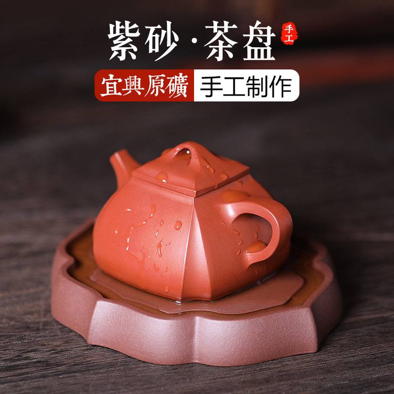 Yixing Purple Sand Tea Tray Creativity Small Total Handmade Rhombus Home Cup of Purple Sand Pot cushion Kettle Bearing Dry Foam Table
