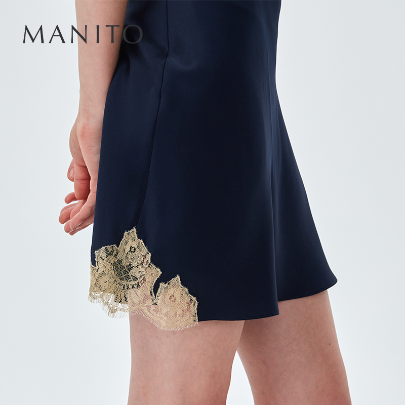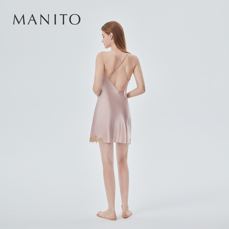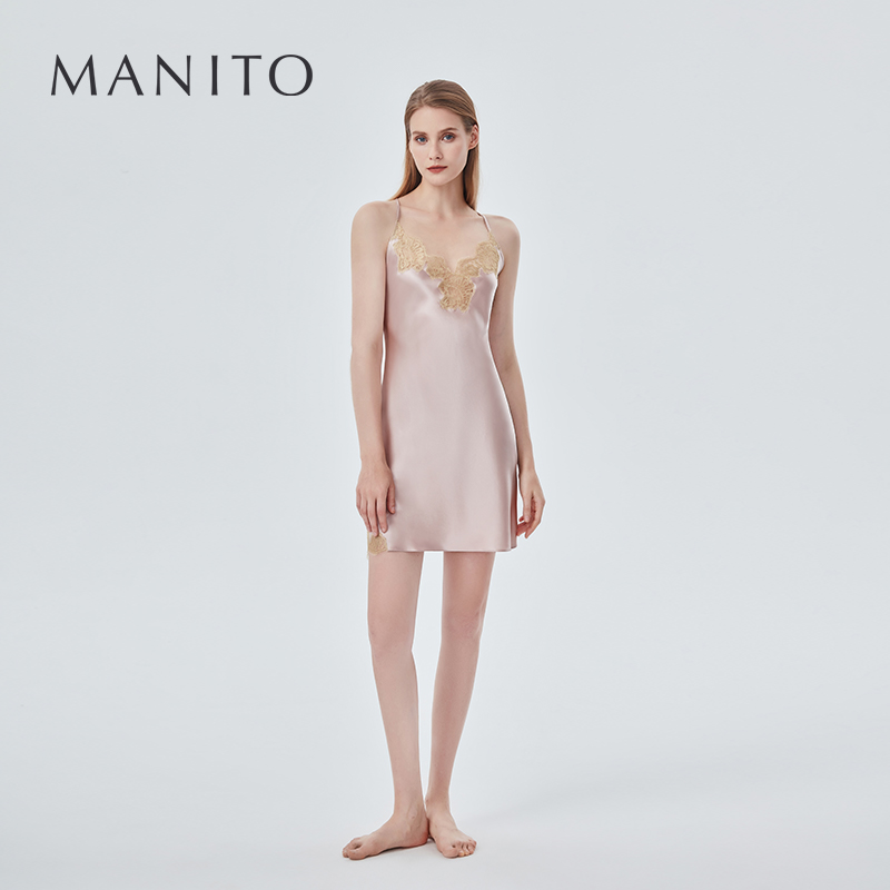 MANITO MANITO silk pajamas Sexy lace suspender short night dress Fashion Mulberry silk V-neck home wear