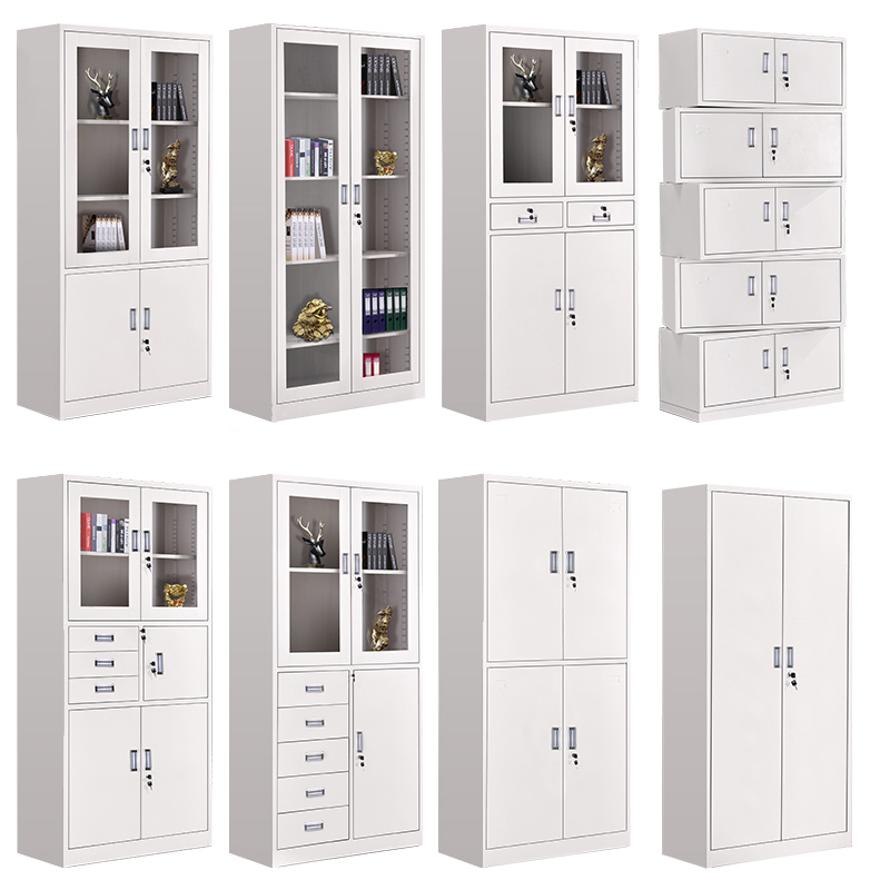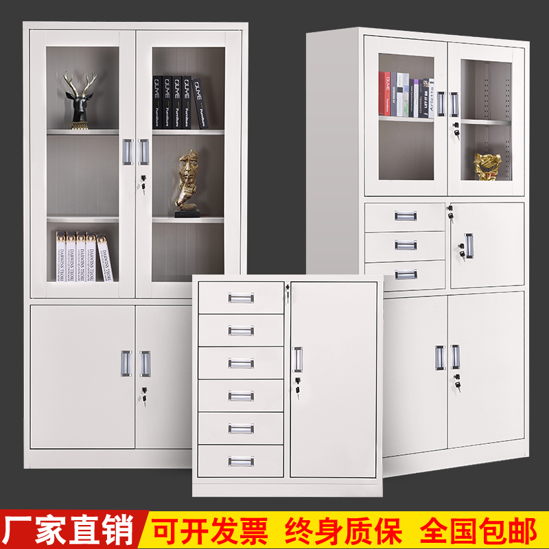 White milk white red silver grey grey dark gray dark gray red pink red rice white orange red large cabinet through glass file cabinet three fighter cabinet opened