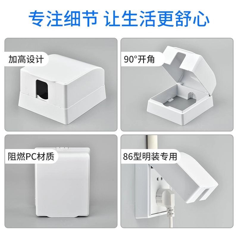Bright Dress White Waterproof Case Socket Waterproof Hood Plus High Adhesive Type Minine Bathroom Makeup Room Switch Splash Splash Water Box