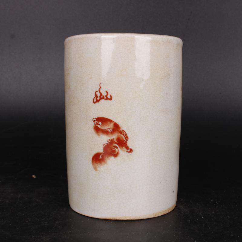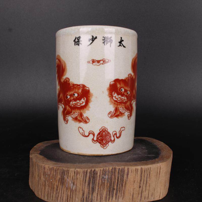 Qingganlong famille rose Taishi Shaobao pen container Wen play antique real old goods folk collection household books and supplies room ornaments