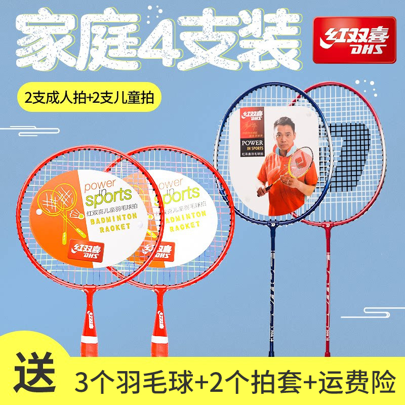 Red Double Hi Parent-Child Badminton Racket Set Adult Children Elementary School Students Beginners Learn to Play Badminton Racket Super Light Badminton