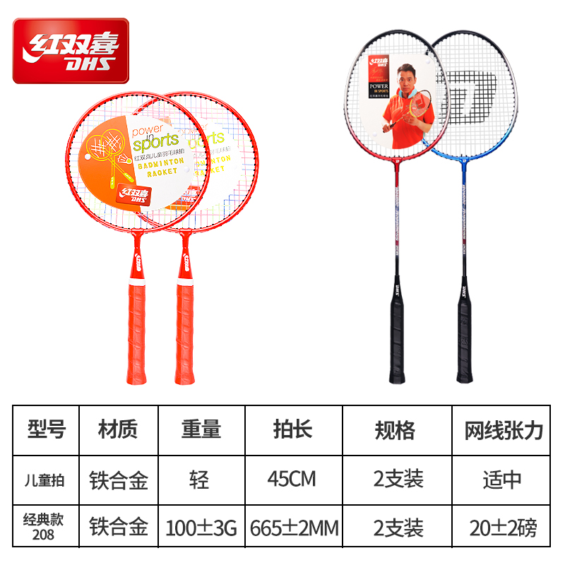 4 packs (209 red + blue) + (E-DT101 yellow two) 3 badmintons and 2 racket sets