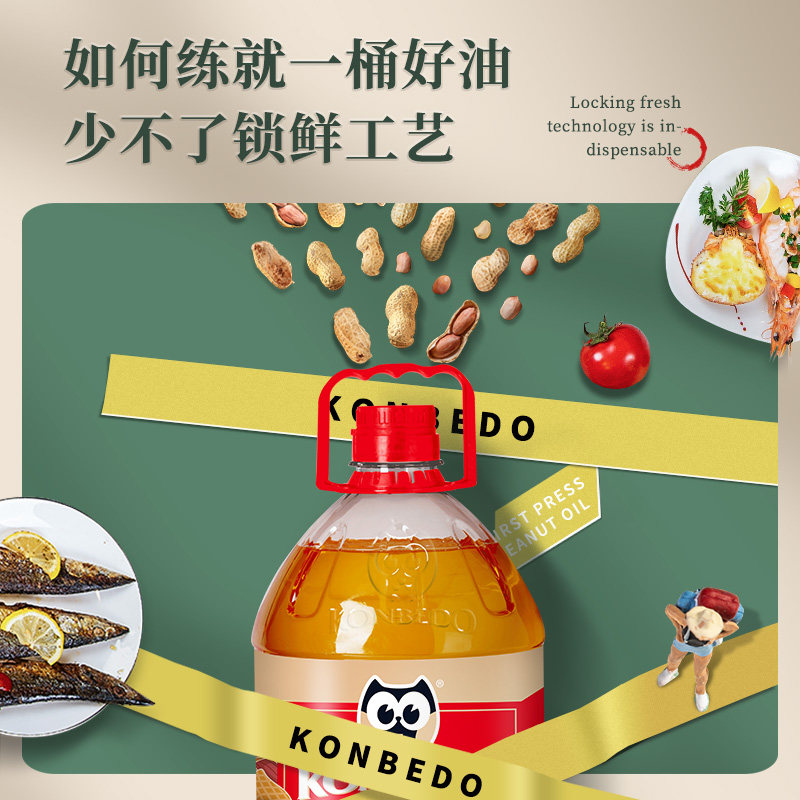 Kangbeduo first-grade pressed peanut oil Shandong Peanut pure peanut oil 5L*2