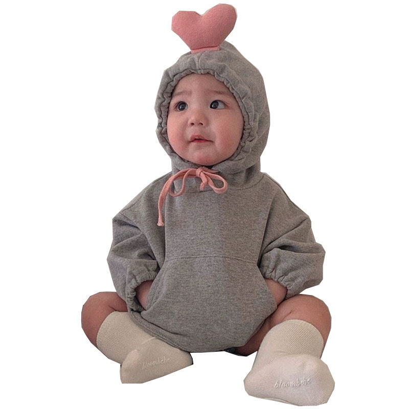 2021 spring and autumn and winter Korea with the same three-dimensional love climbing suit ins wind hooded coat cute baby bag fart clothes tide