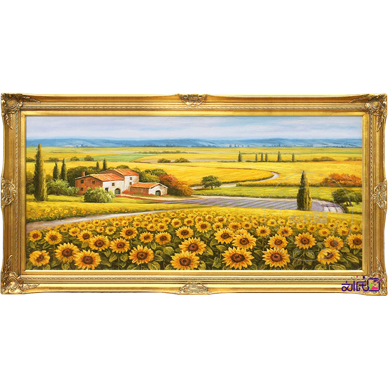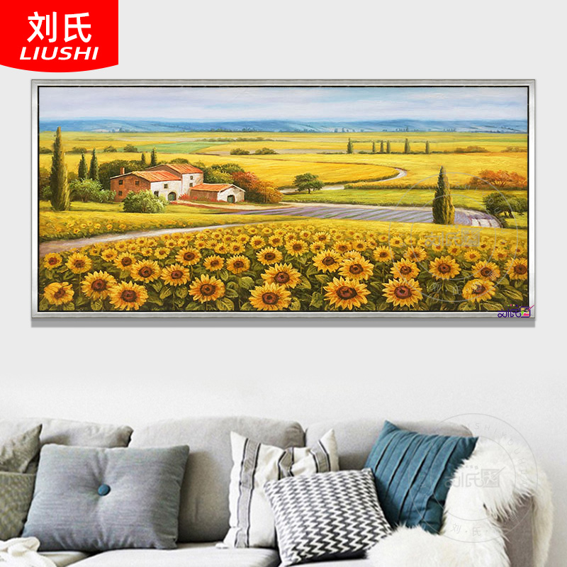 Brief Eu Living Room Sofa Background Wall Hand-painted Oil Painting European-style Horizontal Version Sunflower American Fields Garden Wind Decoration Painting Hanging