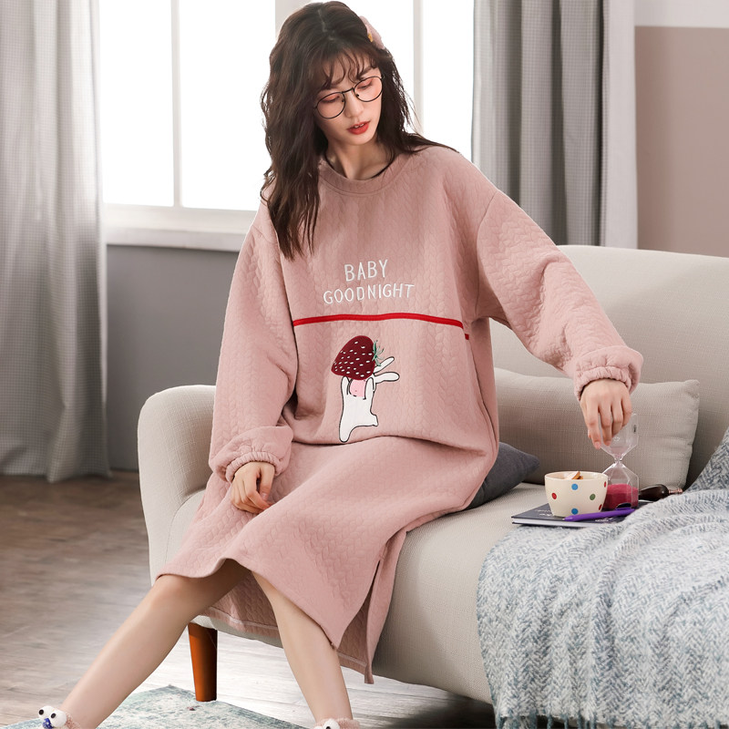 Pure cotton sleeping dress lady autumn and winter students lovely Han Edition can wear long sleeve pajamas all cotton home suit
