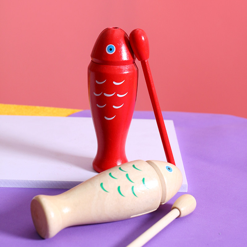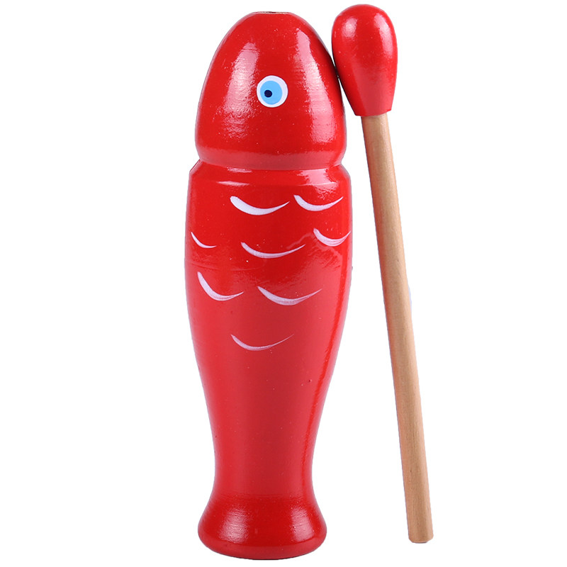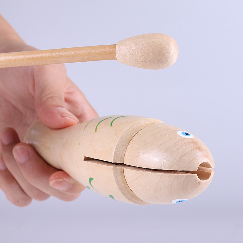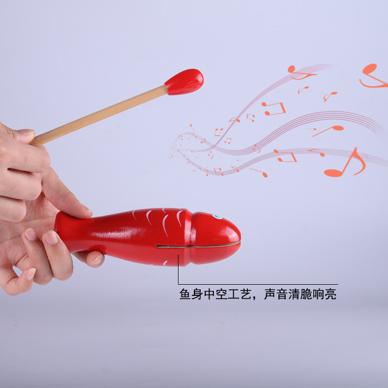 Children's Preschool Teaching Wooden Fish Cartoon Orff Percussion Instrument Solid Wood Drum Professional Kindergarten Music Teaching Aids