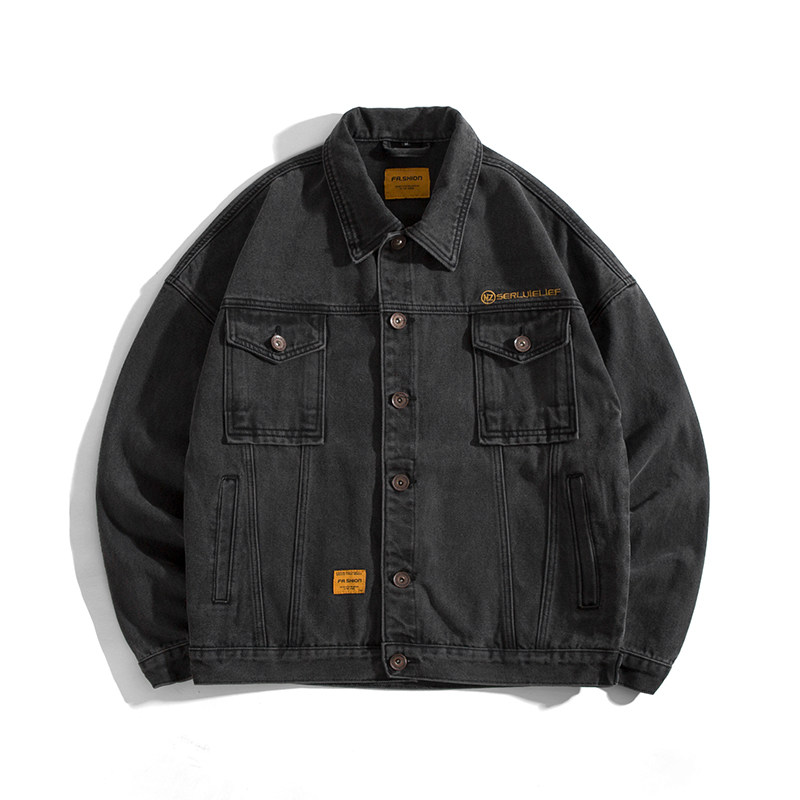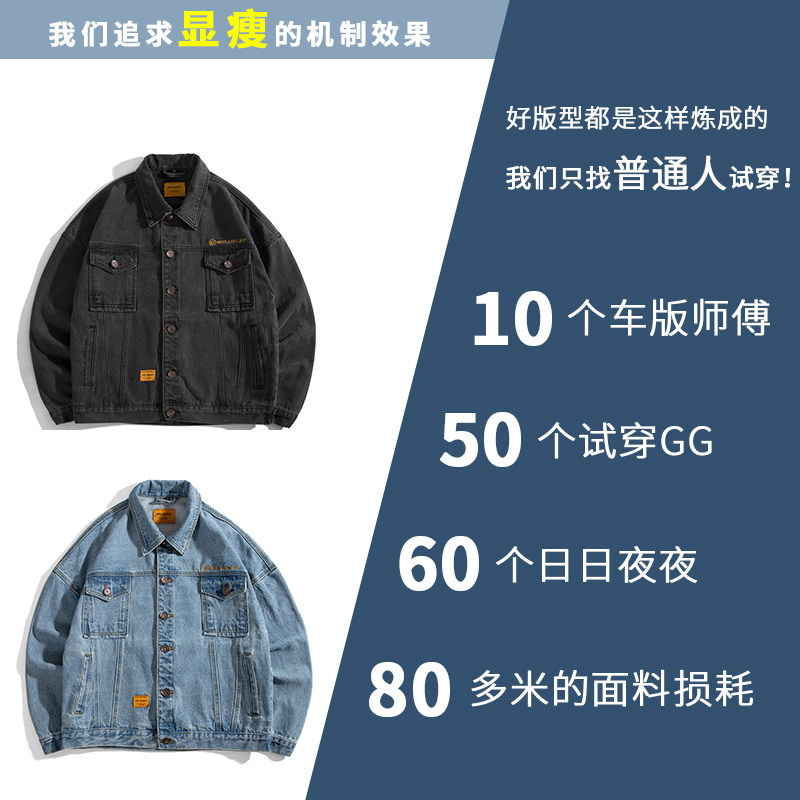 Denim jacket men's spring and autumn fashion brand loose black men's frock jacket large size spring Korean version of the trend is versatile and handsome