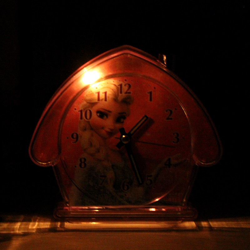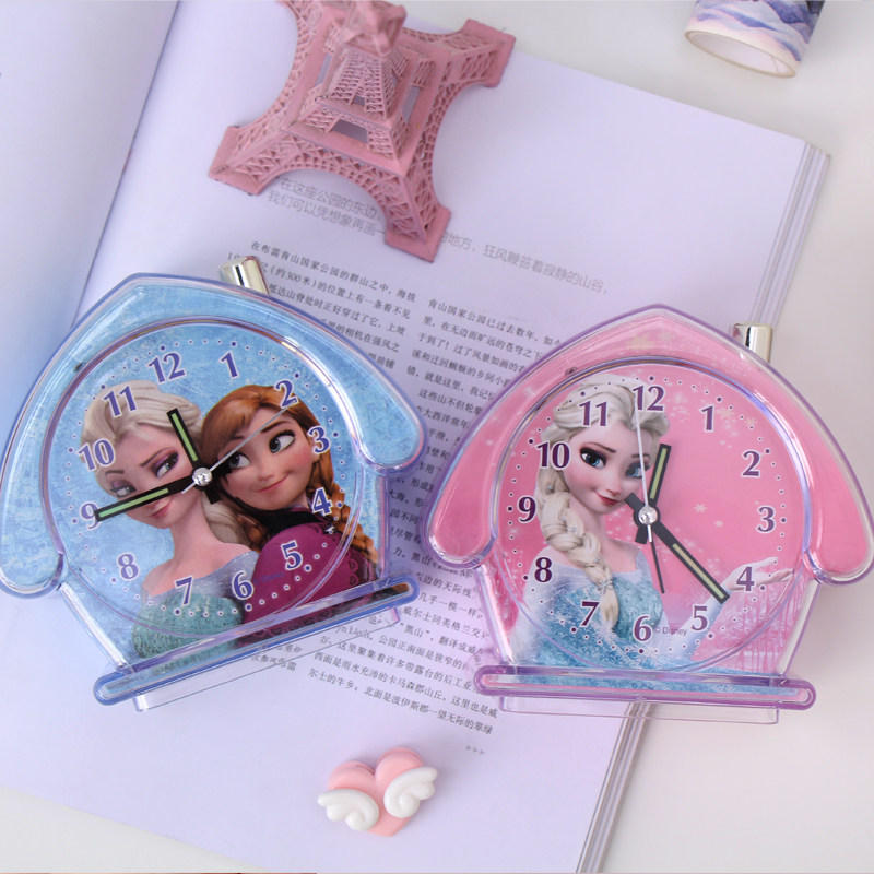 Frozen silent children's alarm clock Music creative night light Bed head small alarm clock Student bedroom cartoon clock cute