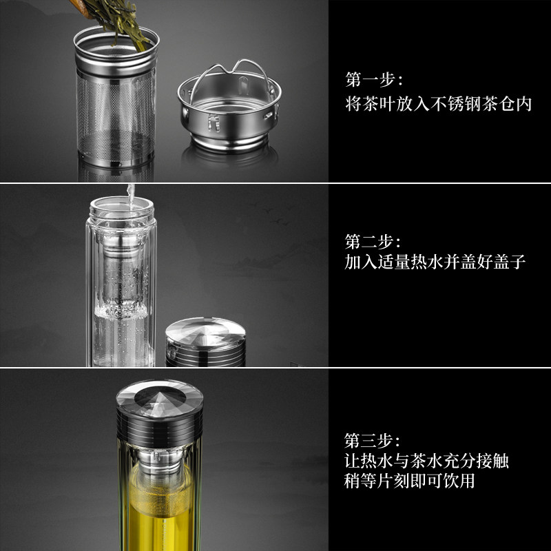 British Bemega high-grade double-layer glass men's tea water separation tea cup Portable transparent insulated water cup