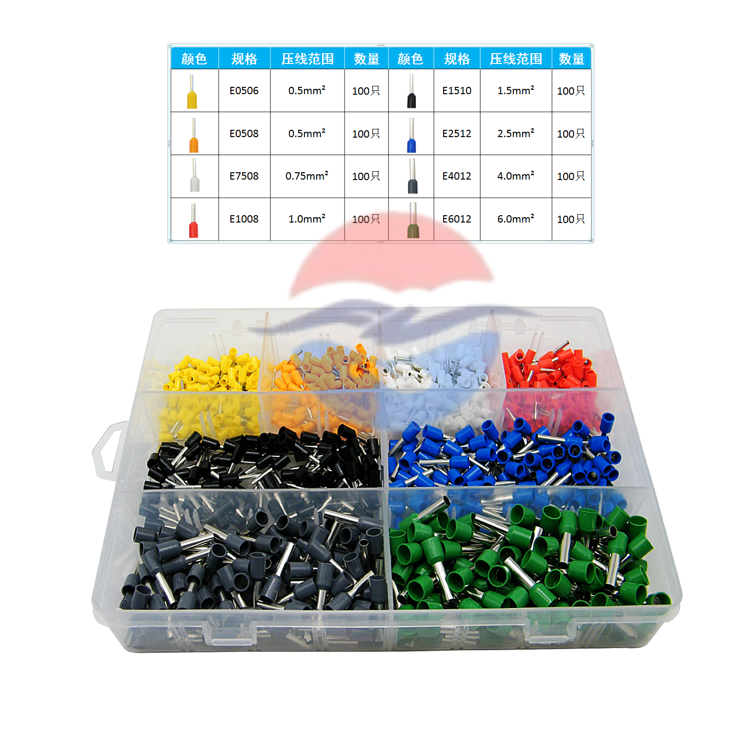 New cross-border 800 European test copper nose tube type pre-insulated needle tube terminal terminals 100 pieces each of 8 specifications