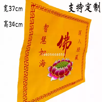 Buddhist supplies double-layer thickened embroidery scripture cover gold silk yellow Buddha character Lotus cover Sutra cloth Buddha large size