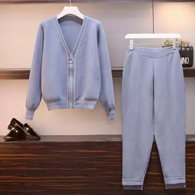 Middle-aged women's 40-year-old fashion autumn suit big size fat mother foreign school female middle-aged fashion knitted two-piece set