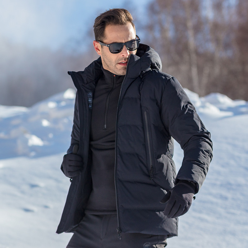 Sanfu men's outdoor autumn and winter cold protection warmth medium long down jacket white duck down windproof coat jacket thickened