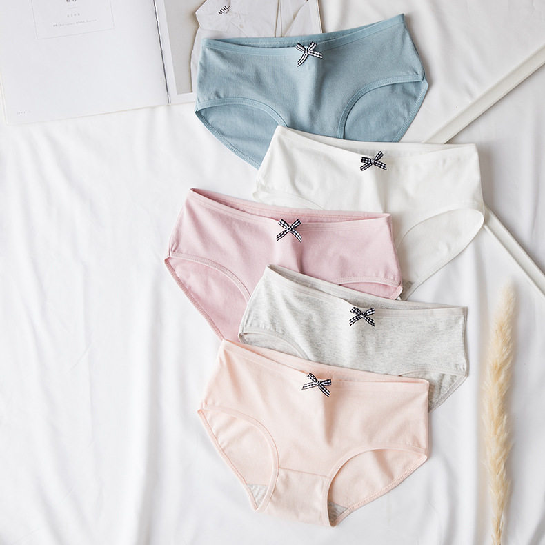 Solid color bow cute ladies underwear student simple fresh girl briefs cotton fabric breathable and comfortable