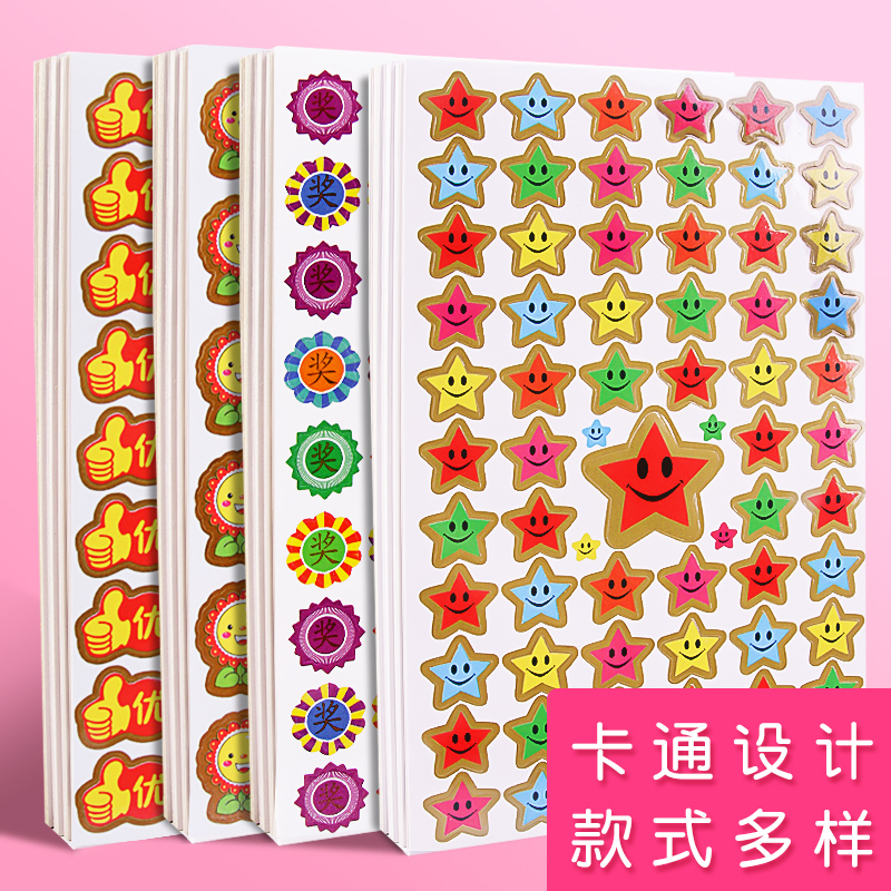 Child Reward Stickers Praise For Elementary School Kids Kindergarten Small Red Flowers Pentagon Thumb Cartoon Cute Self Sticking Points Card Self-discipline Table Smiley Face Teachers Special Home Summer Vacation Program Table-Taobao