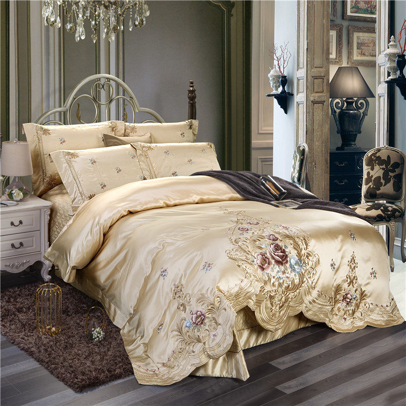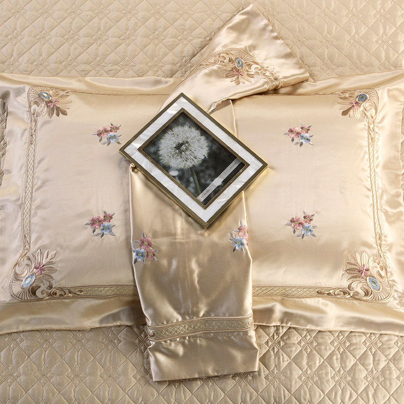 European-style 120-count high-precision long-staple cotton four-piece embroidery quilted bed cover bedding satin jacquard quilt cover