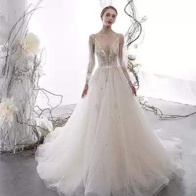 Latie "Ji Ling" main wedding dress 201 new bride simple long sleeve two wear suspenders light French dress women