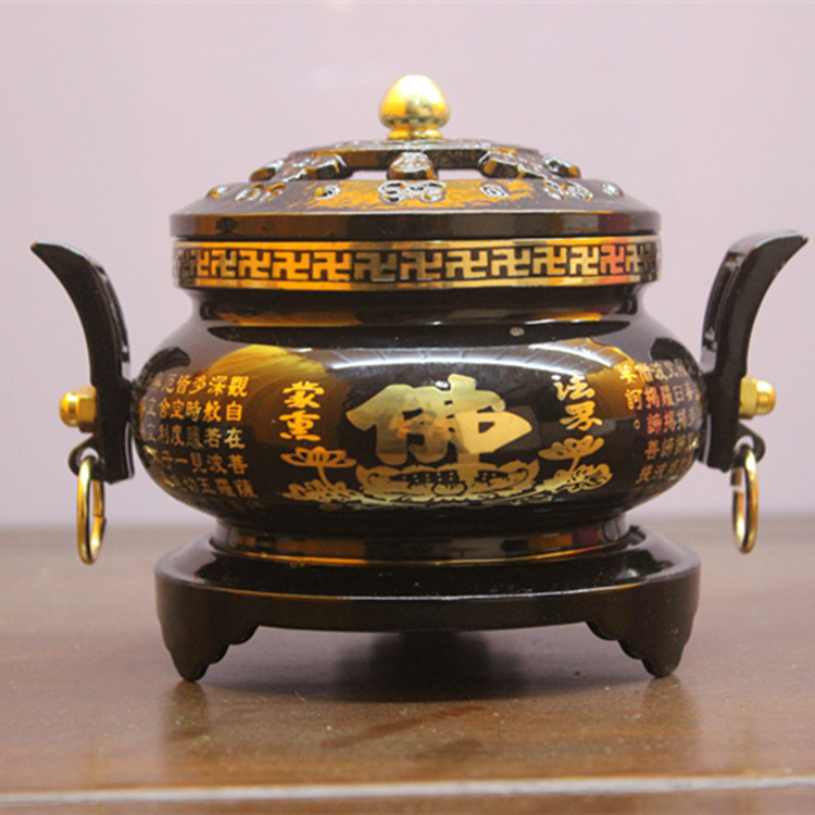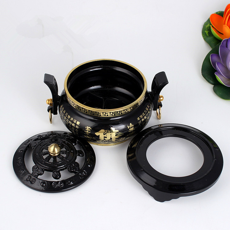 Buddha with Taiwan pure copper censer convex character covered Heart Sutra sandalwood clean furnace paint plate incense furnace
