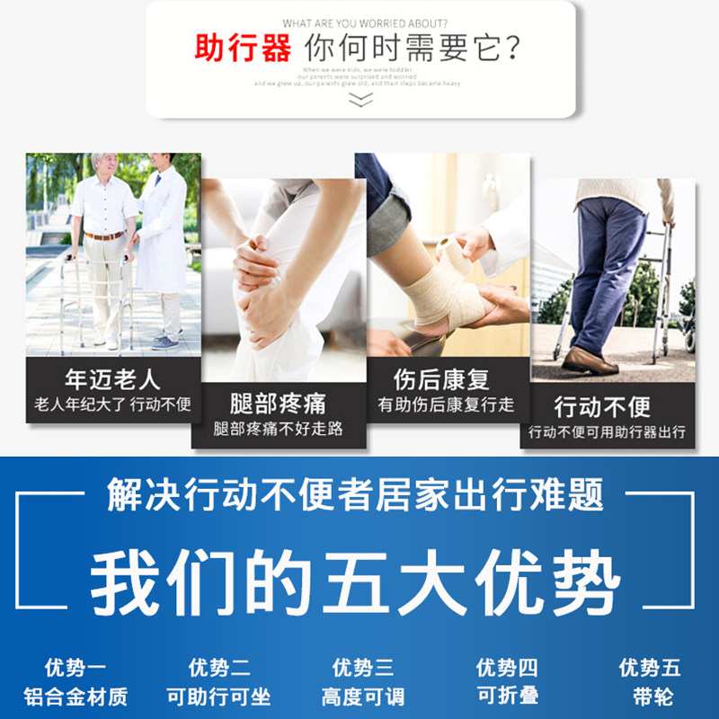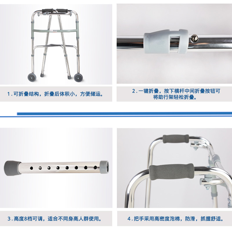 Foshan Oriental Elderly walker with wheeled four-foot assisted walking able to sit fractured rehabilitation folding walking booster