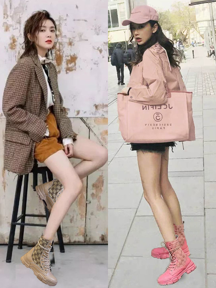 Martin boots women's popular 2022 new spring thin section net red boots super hot spring thin canvas ankle boots pink