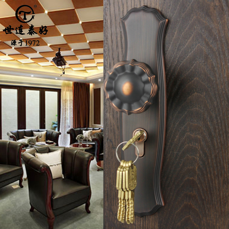 Shiliantai good copper lock American antique copper lock bedroom door lock indoor room all copper solid wood door lock SM1210-2