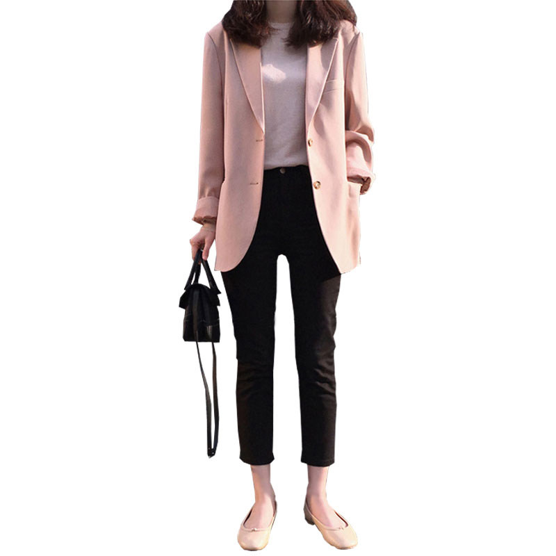 Early autumn chic small suit jacket female Korean version casual 100 lap loose pink medium long version Western suit 2020 new woman