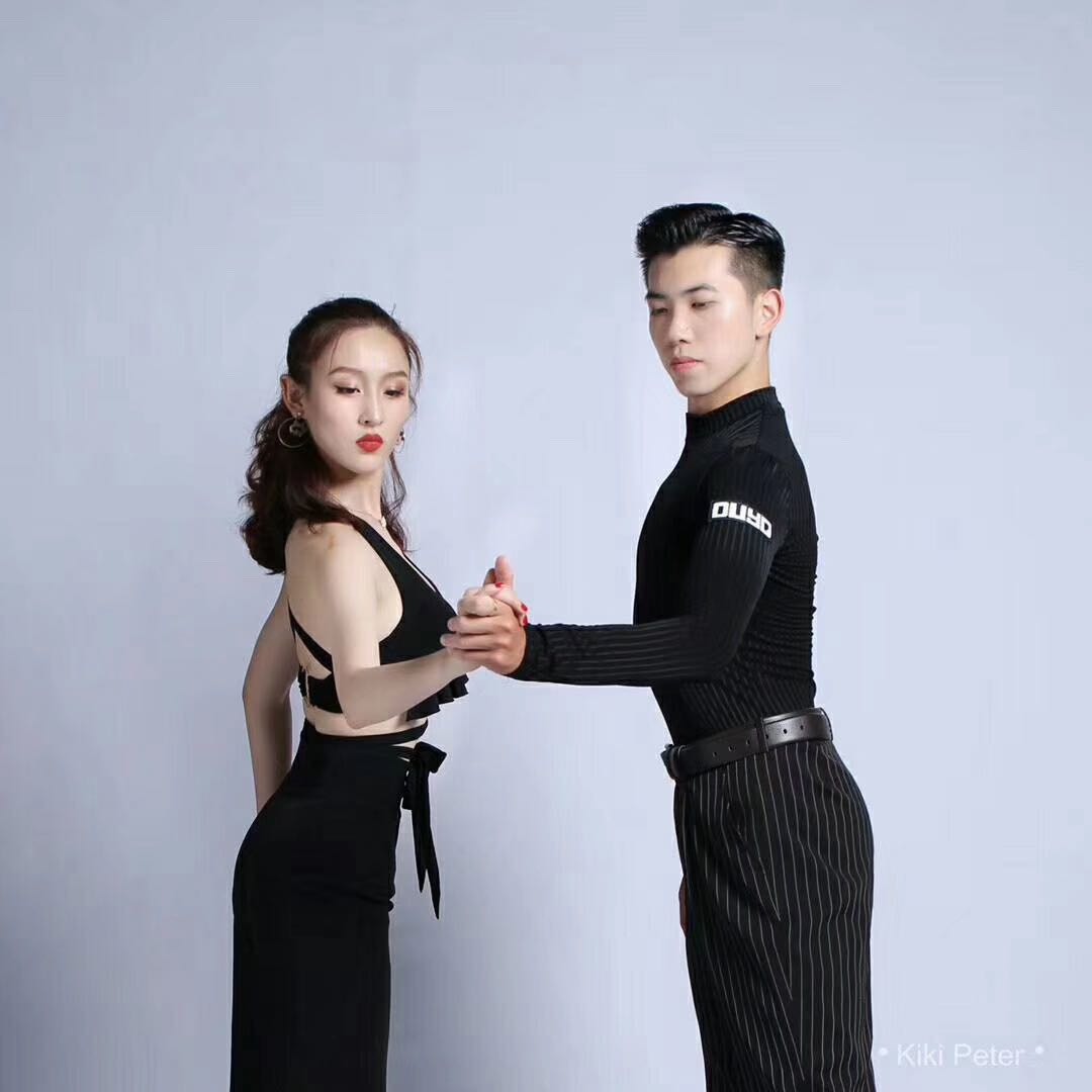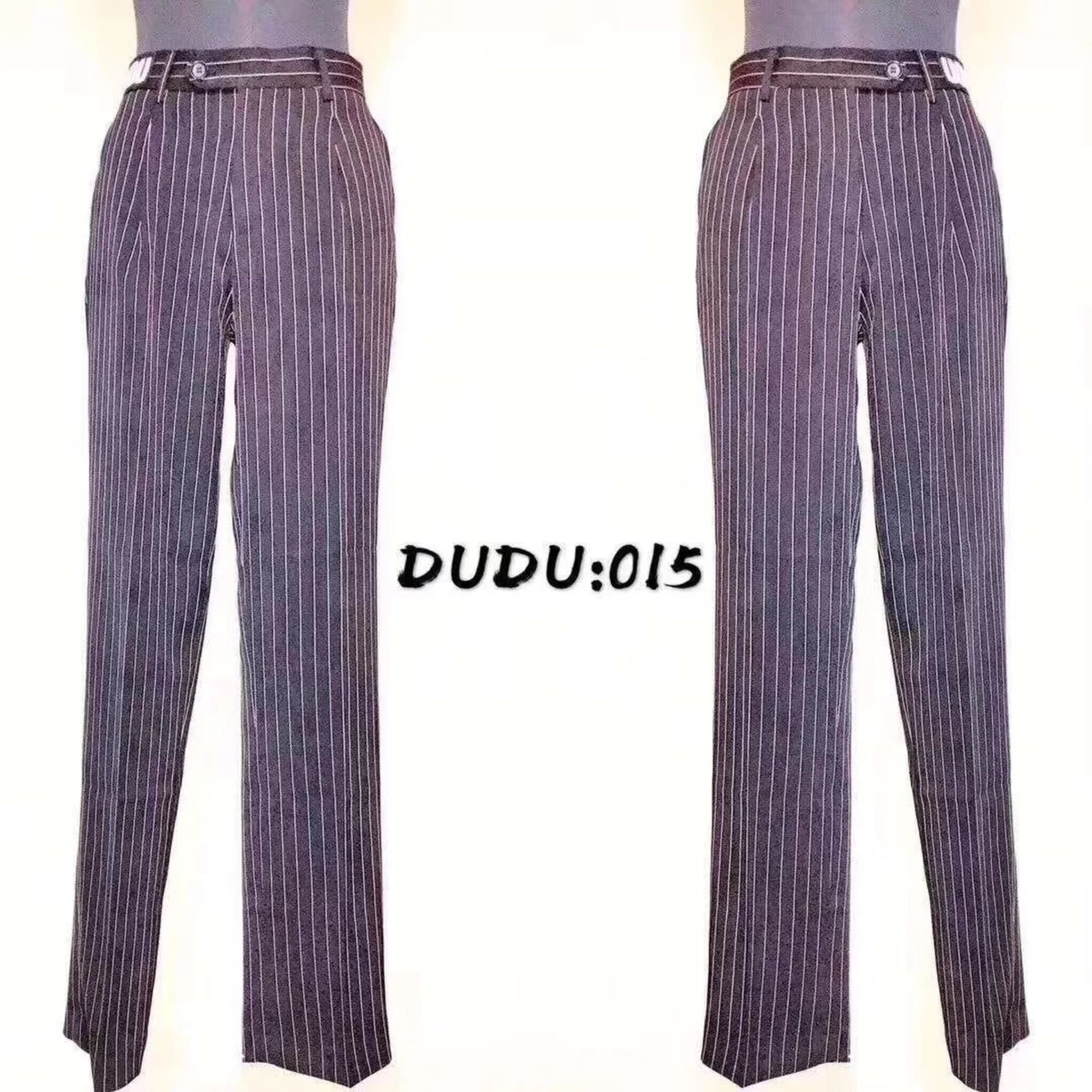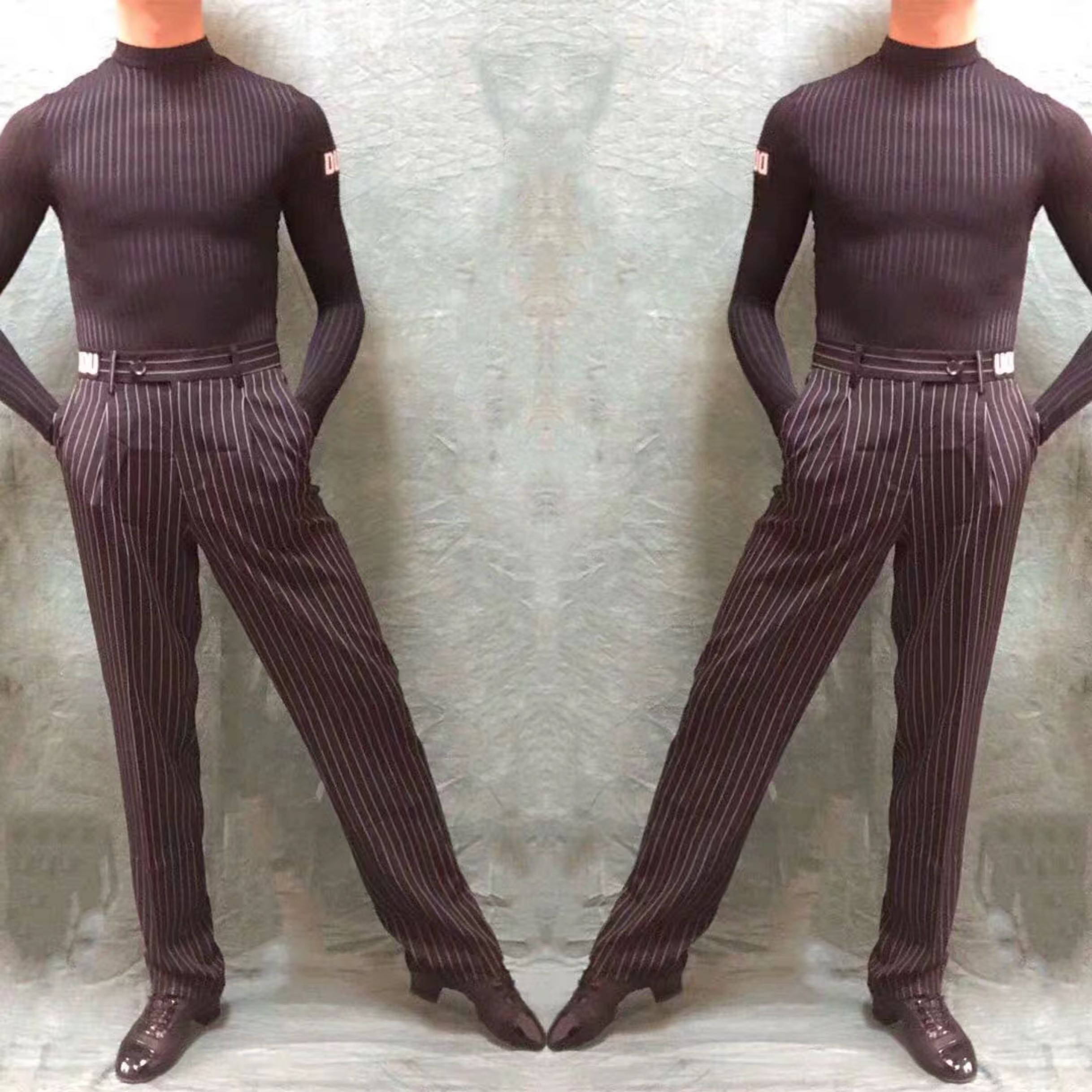 DUYQ Men's Latin Dance Slim Stripe Top 017 Striped Latin Modern Trousers 015
