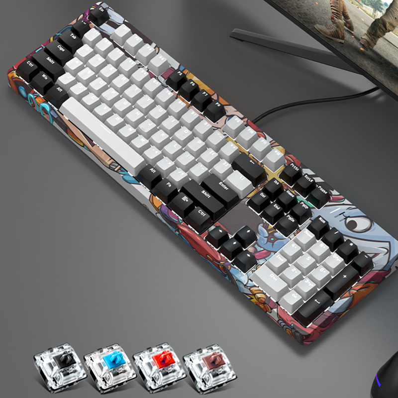 Fighting Fish Real Mechanical Keyboard Game Electric Race Wire Special Black Green Black Tea Shaft CF Eat Chicken Hero League Internet Cafe Double Parquet Powder White Tennis Red Office Typing Laptop Old Xu External Device