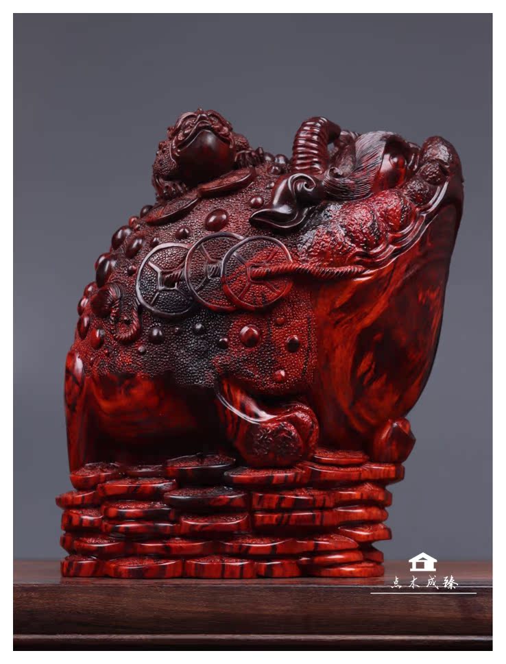 Mahogany handicraft Indian lobular red sandalwood pure handmade wood carving golden toad large ornaments company lucky town house