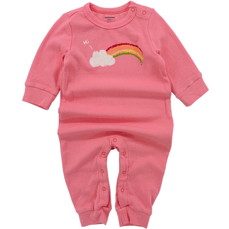 Baby jumpsuit spring and autumn thin section elastic sleeve head shoulder buckle male cotton 0-3 months 9 female 6 baby outing clothes