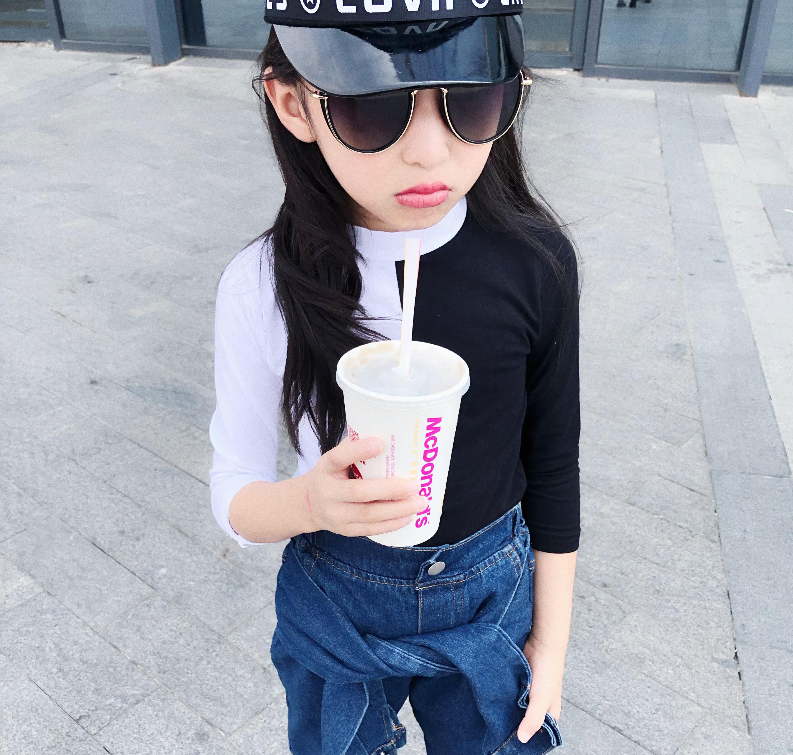 2020 spring new girls fashion foreign school stitching long-sleeved T-shirt fashionable Korean version stretch catwalk top tide suit 8