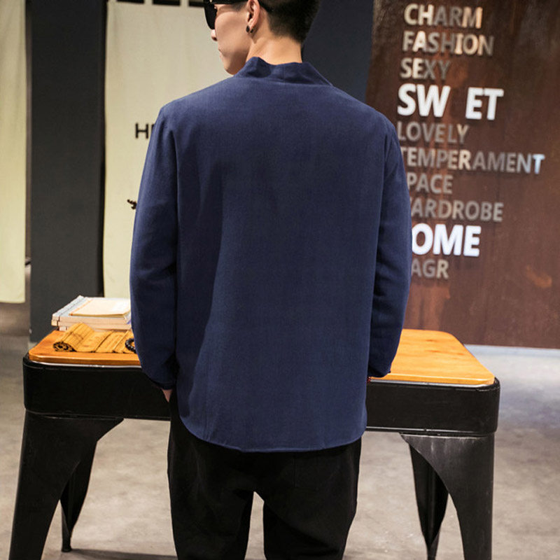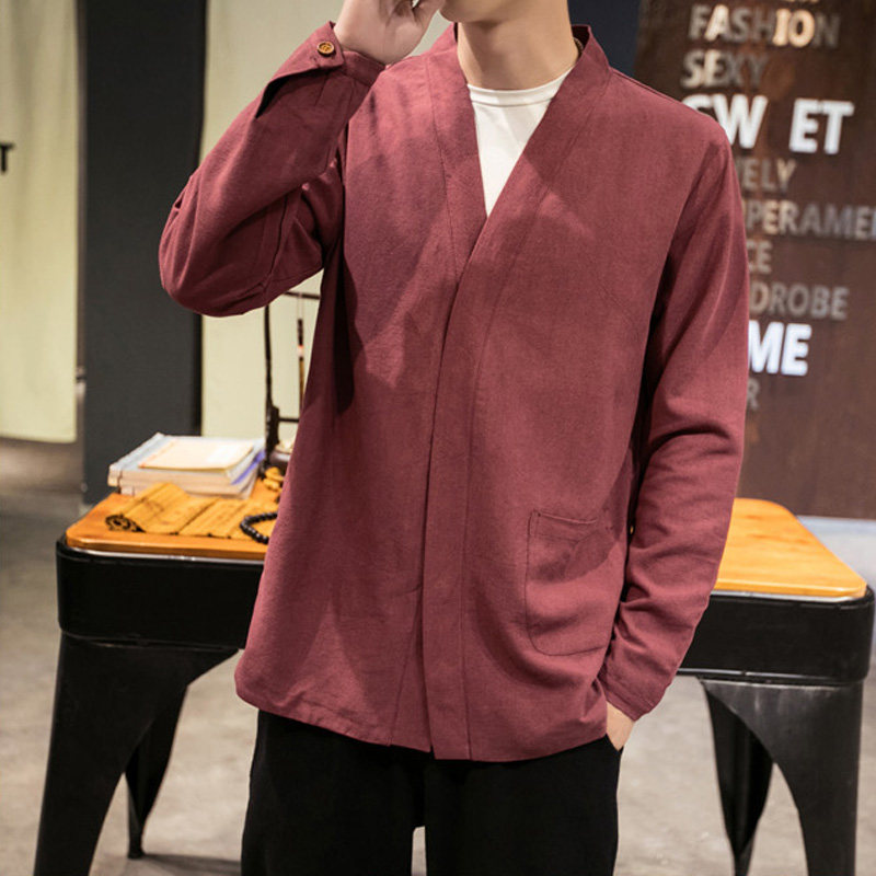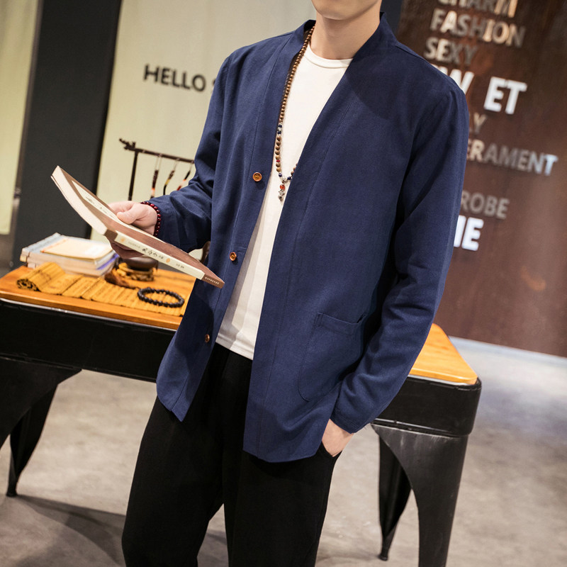 Spring-autumn-thin-style cardio-hoodie jacket male Chinese style clothes Outerwear Clothing Pure color Gushi Costume Zen art youth clothes fat