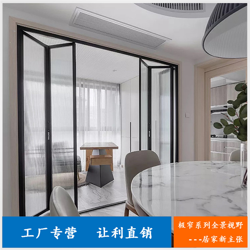 Kitchen balcony titanium magnesium aluminum alloy narrow frame double glass folding door sliding door bedroom sliding door hollow door customization