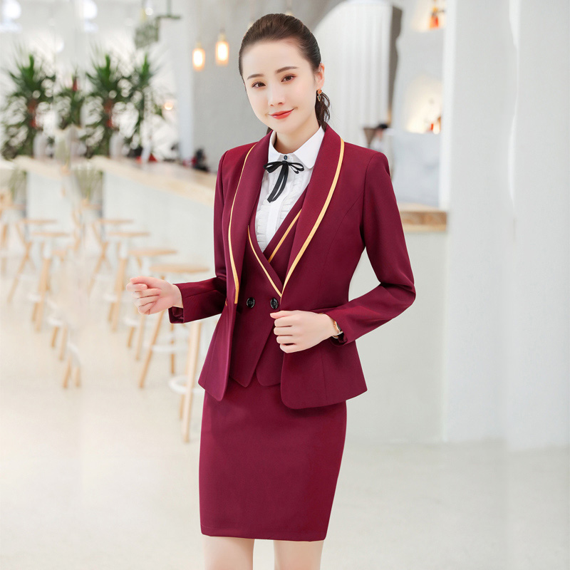 Blue vest, long-sleeved gray shirt, blue skirt, blue vest, long-sleeved gray shirt, blue pants, blue jacket, long-sleeved gray shirt, blue skirt, blue jacket, long-sleeved gray shirt, blue pants, blue jacket, blue pants, blue skirt, blue jacket