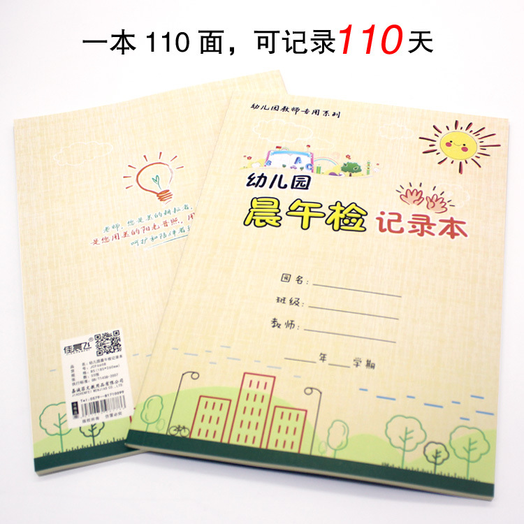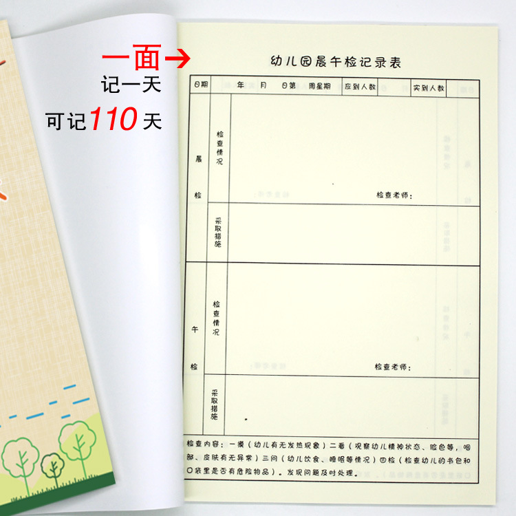 Kindergarten morning and afternoon inspection record book B5 extra thick coated paper color printing Kindergarten routine management manual Jiachenfei